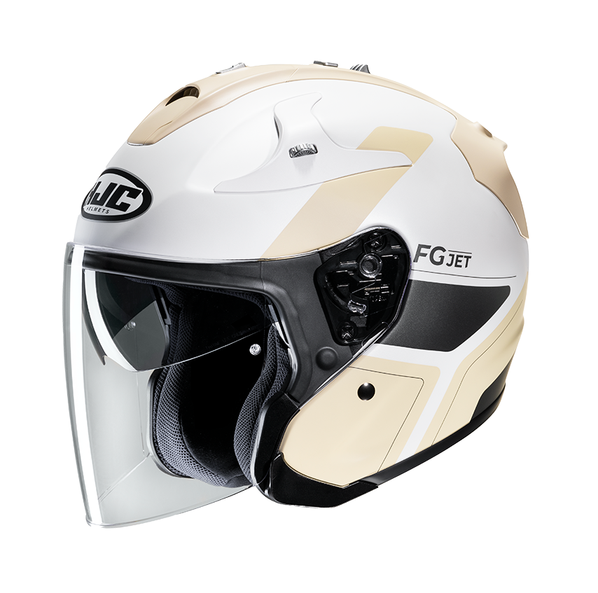 Hochentwickelter aramid- und Fiberglass-Matrix Motorrad Jethelm FG JET von HJC mit Composite-Gewebeschale. Extrem leichter Jethelm mit überdurchschnittlich guter Passform und höchstem Komfort.