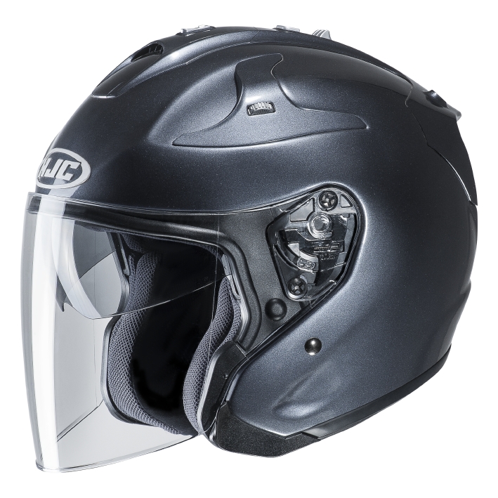 Hochentwickelter aramid- und Fiberglass-Matrix Motorrad Jethelm FG JET von HJC mit Composite-Gewebeschale. Extrem leichter Jethelm mit überdurchschnittlich guter Passform und höchstem Komfort.
